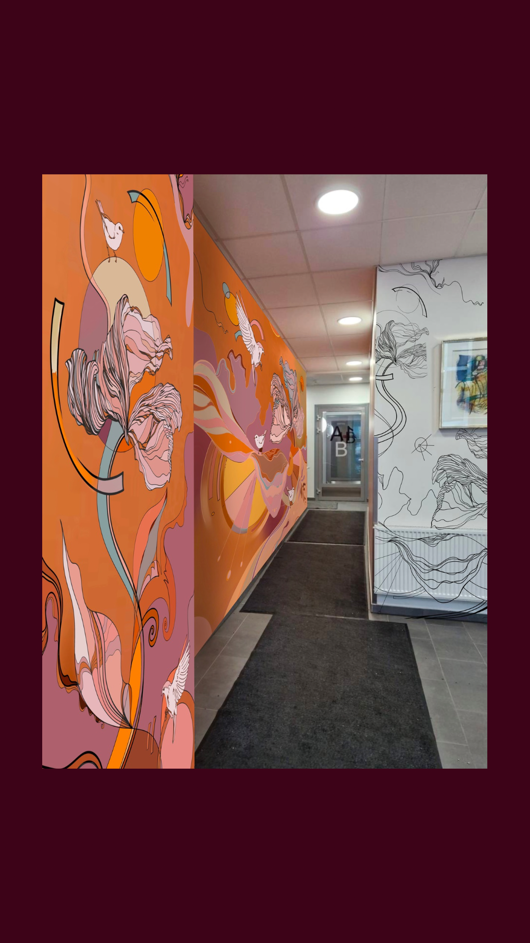 Project of monumental painting for the main entrance of high-rise house in Jatkasaari, Helsinki, Finland