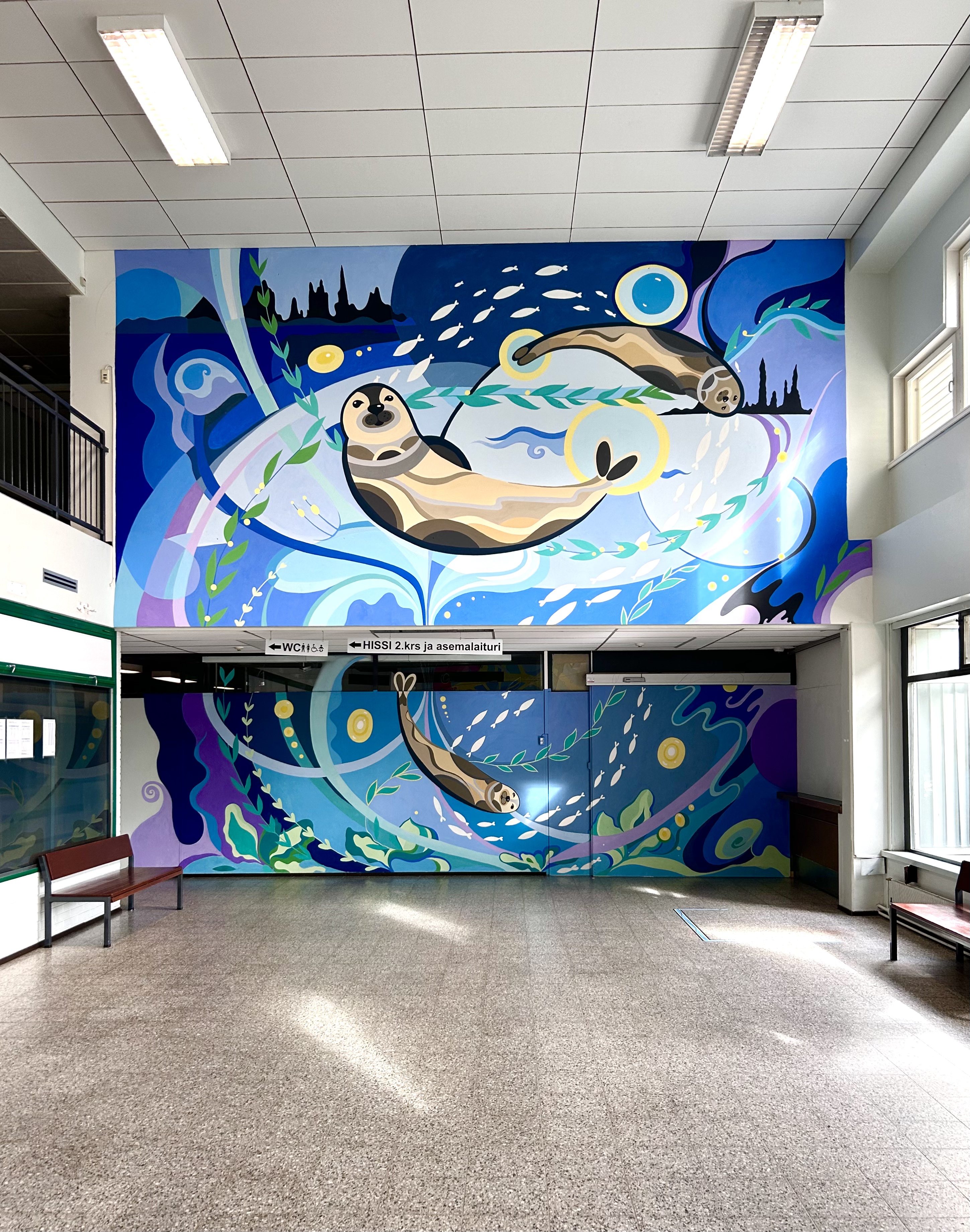 The project of murals “Saiman Seals” and “Mill of Happiness-Sampo” of the railway station in the city of Imatra, Finland